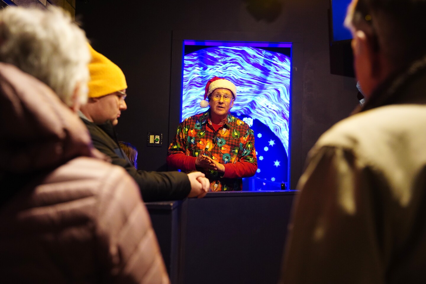Guests walk through the spinning Blizzard Vortex tunnel attraction at Castle Noel. (Ryan Loew / Ideastream Public Media)