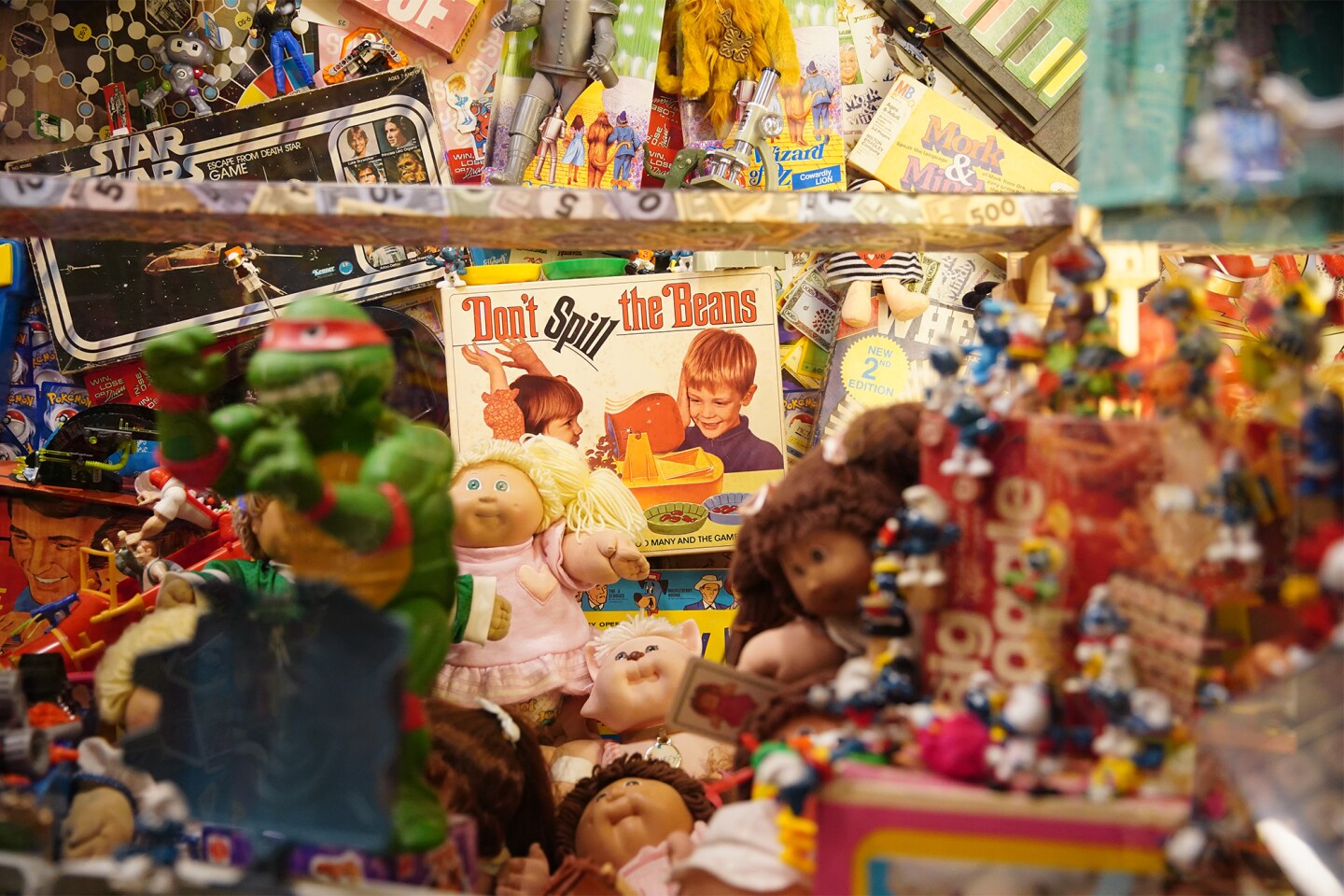 Toys line the "Enchanted I Had That Toyland" section of Castle Noel. (Ryan Loew / Ideastream Public Media)